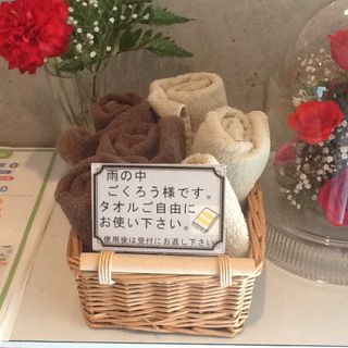 入り口にタオルを置いてますので